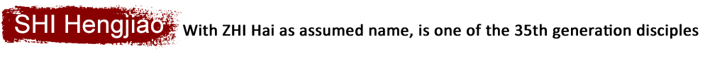 SHI Hengjiao, a Shandong native, born in 1978, with ZHI Hai as assumed name, is one of the 35th generation disciples and the inner chamber follower of SHI Yanxing, one of the 34th generation Shaolin Martial Monks, and is fascinated in Chinese traditional cultures of martial arts.